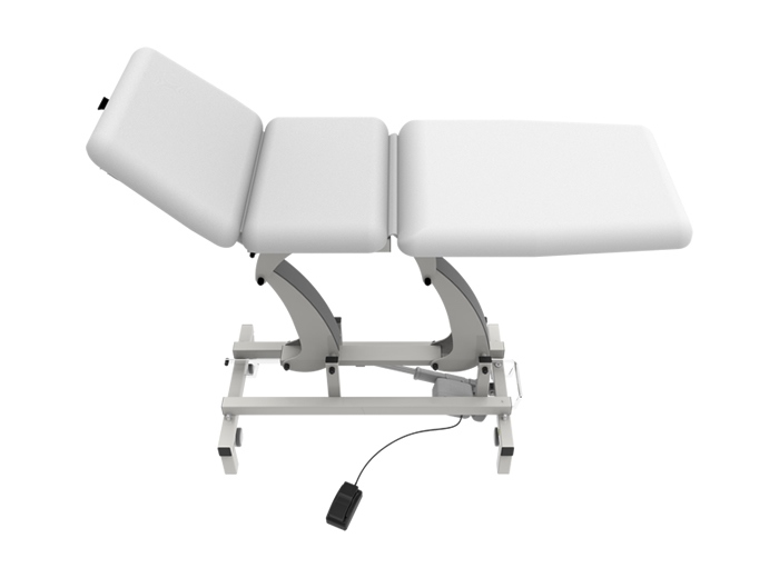 El movimiento ascendente y descendente se controla a través del pedal, lo que permite mayor control al profesional de las distintas posiciones que se manejan en los distintos tratamientos.