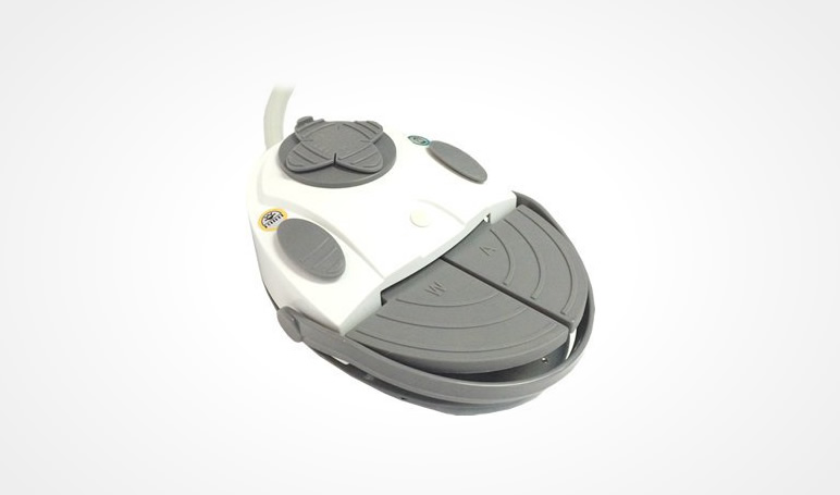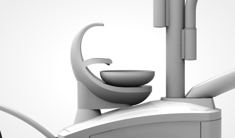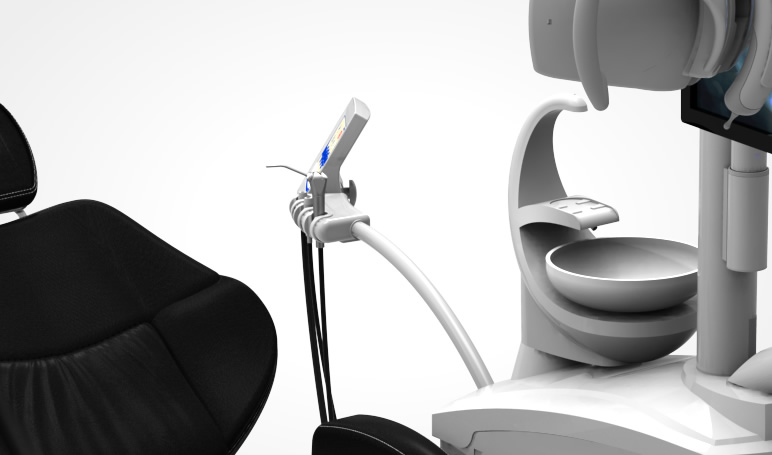 Comando digital con todas las funciones de la unidad; jeringa triple, y doble sistema de succión compuesto por un eyector neumático de potencia y dos colgadores automáticos (fino y grueso) para ser conectado a una bomba de vacío.