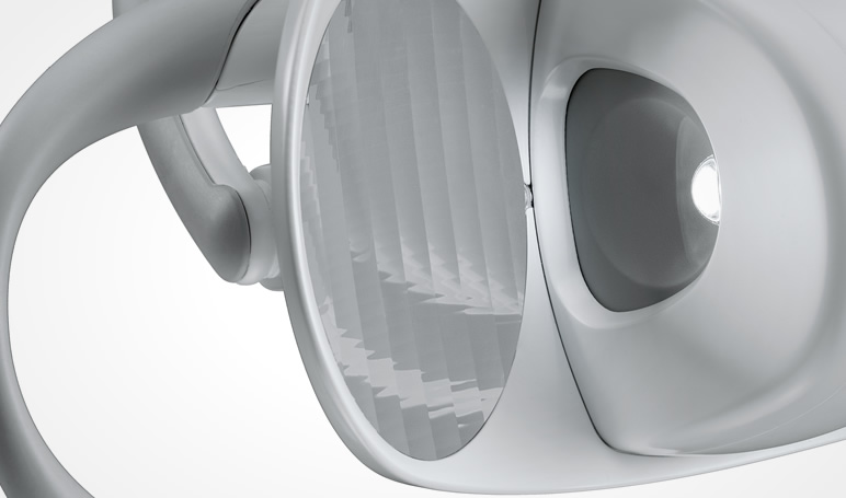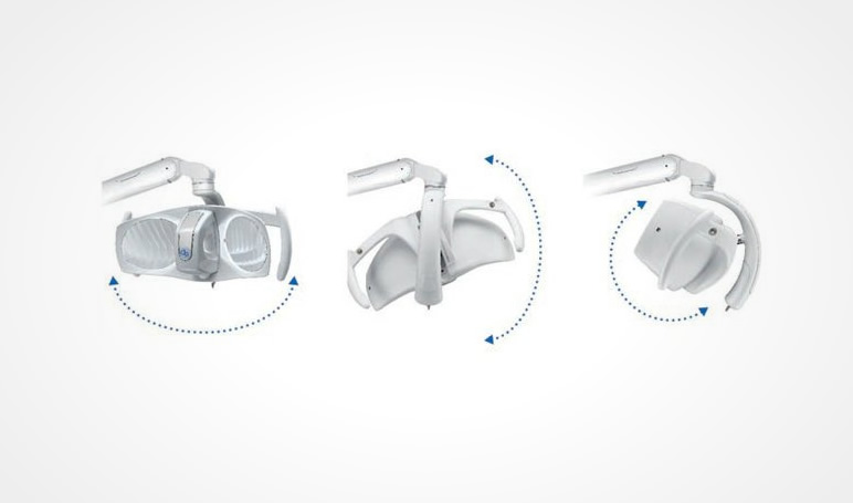 Sistema patentado y exclusivo que reduce el riesgo de encandilamiento accidental al paciente y a su vez permite iluminar desde múltiples posiciones el campo de operación.